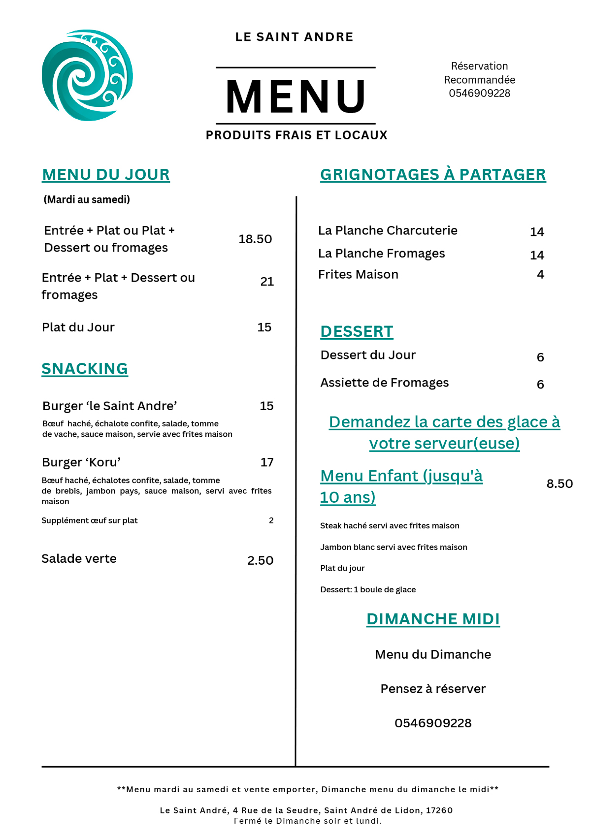 Pensez à réserver : réservation uniquement par téléphone ou sur place.